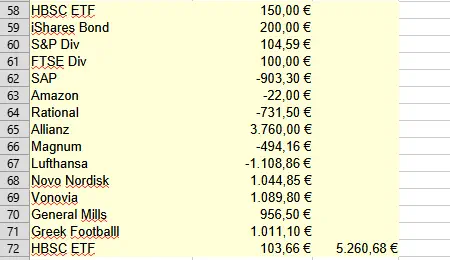 Zur Einordnung: Minus bedeutet hier Plus, also eine Einnahme. 🤗 Um die 5000 Euro sind damit ins Depot geflossen.